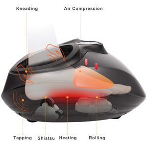 1.足底深层按摩;2.舒适的脚背气压按摩;3.2种按摩方式:推拿+气压按摩,单次气压按摩;4.2气压按摩强度可供选择;5.舒缓暖气,放松身心;6.可用于足部、脚踝和小腿;7.15分钟后自动关机;